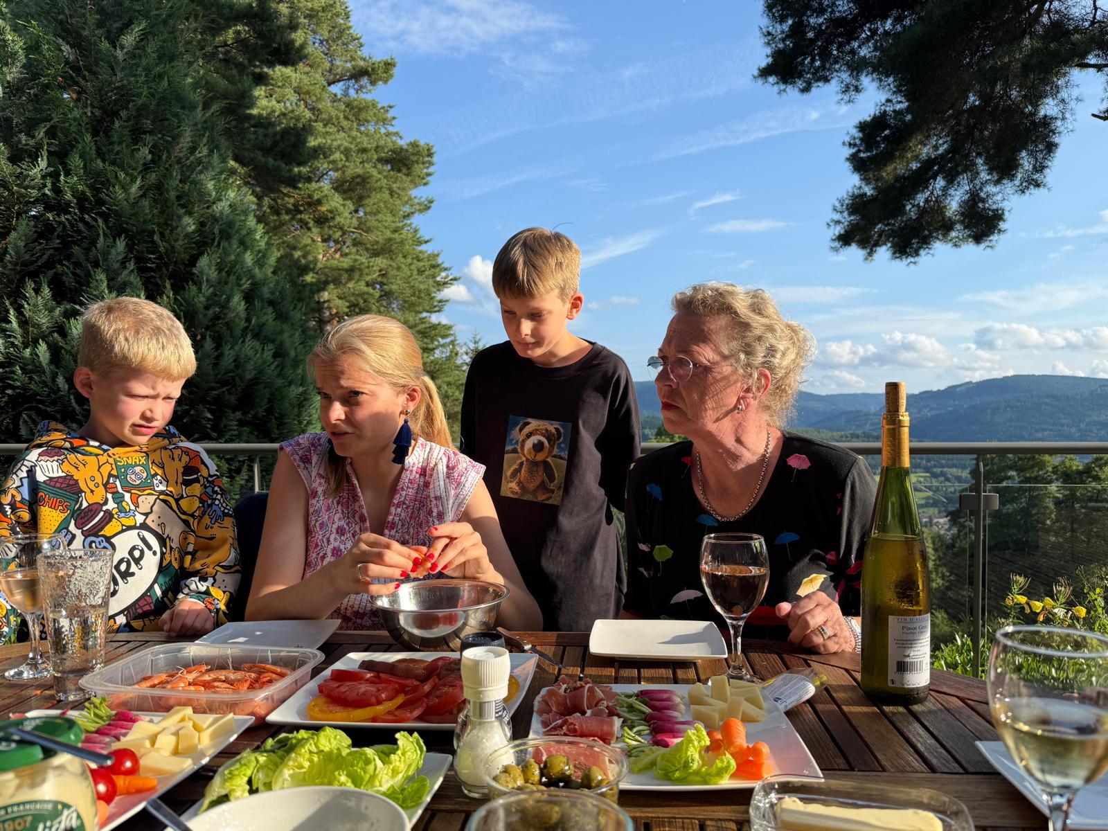 Accroché sur les hauteurs de Fraize, le Chalet du Haut du Bout est entouré de nature. Devant, il y a la ligne bleue des Vosges. Derrière, il y a la forêt. Autour, il y a un grand parc, plusieurs terrasses, beaucoup d’arbres et d’oiseaux. A côté, il y a les prés, des chevaux, des moutons, et plein de chemins pour se balader. Un peu plus loin, il y a les lacs, les randonnées, les villages alsaciens, les sports d’hiver et les sports d’été. Dedans, il y a une grande pièce à vivre avec un poêle et des baies vitrées, une chambre parentale avec sa salle de bain. A l’étage, il y a deux chambres ouvertes sur la forêt, séparées par une deuxième salle de bain. Retapé pendant plusieurs années en famille, le Chalet du Haut du Bout est le fruit des détails apportés par chacun pour vous accueillir en alliant nature et confort.